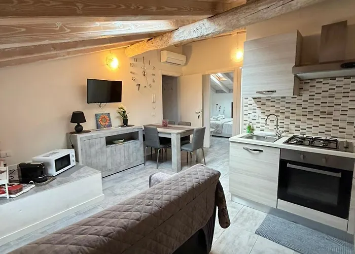 Apartament wyposażony jest w udogodnienia do samodzielnego przygotowywania posiłków, w tym w wyposażony aneks kuchenny oraz jadalnię. W niewielkiej odległości do przystanku autobusowego Cavalcaselle. Dodatkowo pokoje dysponują patiem z widokiem na dziedziniec.